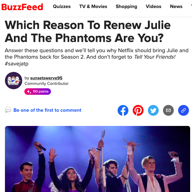 We all know that Julie and the Phantoms is an excellent show for people of all ages. Netflix has separate profiles for Kids, which has its own Top 10 separate from all-ages profiles. Kids’ profiles have an “Everyone’s Watching” list, and all-ages profiles have a “Trending” list. These lists are tracked separately, and we have such a good chance of being able to get JATP into the Kids lists if we just keep streaming. If you can, create a Kids profile on your account, check how JATP is doing in your region and take a picture and post to social media, tagging Netflix and its Chief Content Officer Ted Sarandos.